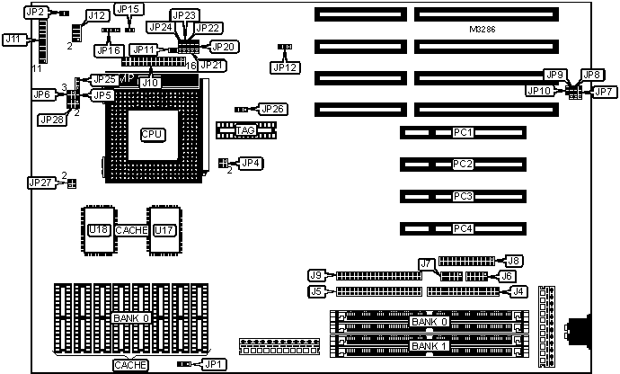 | Turbo LED | J11 pins | 32-bit PCI slots | PC1 - PC4 |