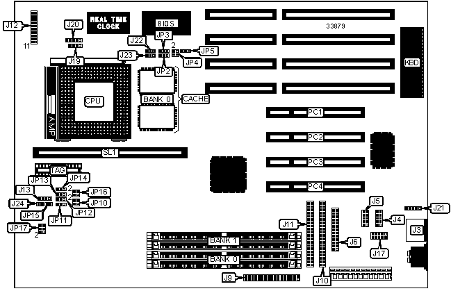 | | CMOS memory clear | JP5 | Pins 1 & 2 |