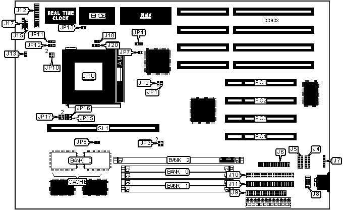 | Green PC connector | J12 pins | Cache slot | SL1 |
