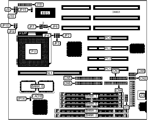 | | CMOS memory clear | JP15 | Pins 2 & 3 |