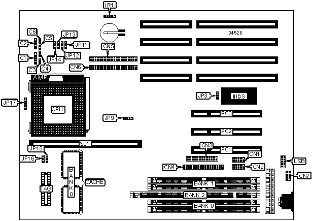 | | CMOS memory clear | JP3 | Pins 1 & 2 |