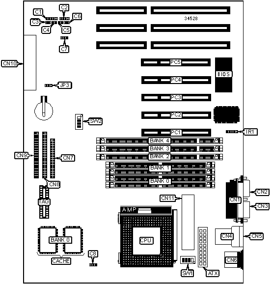 | | CMOS memory clear | JP3 | Pins 2 & 3 |