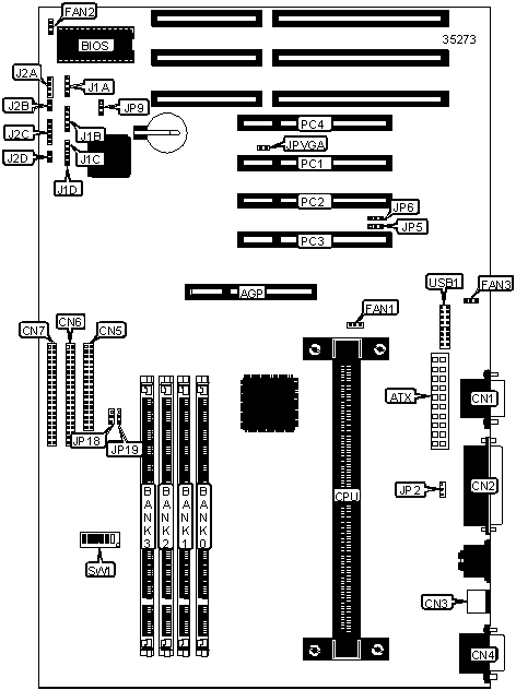 | Floppy drive | CN5 | Reset switch | J2B |