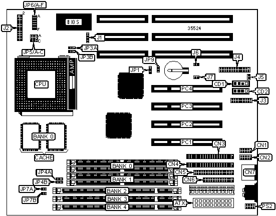 | | CMOS memory clear | JP1 | Pins 1 & 2 |
