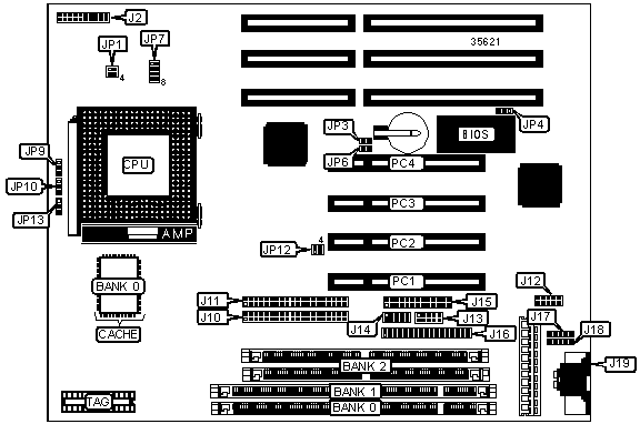 | CPU | Clock | Multiplier | JP9 | JP10 | JP13 | JP12 |
