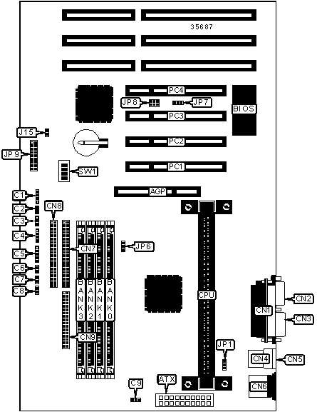 | AGP slot | AGP | PS/2 mouse port | CN6 |