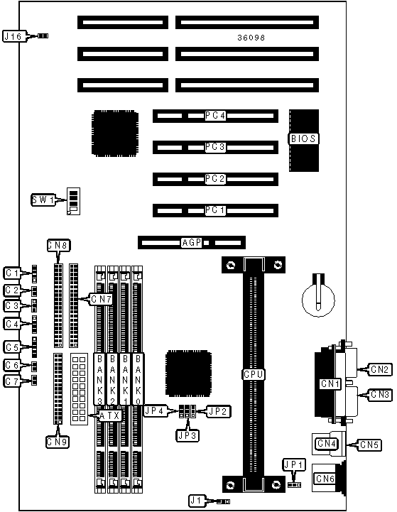 | AGP slot | AGP | Serial port 1 | CN2 |