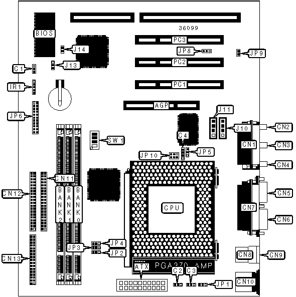 | AGP slot | AGP | IDE interface 1 | CN12 |