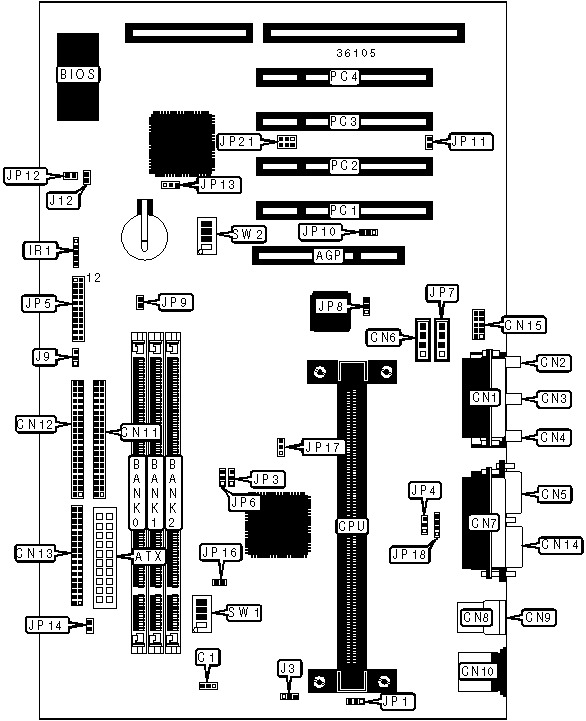 | | CMOS memory clear | JP13 | Pins 1 & 2 |