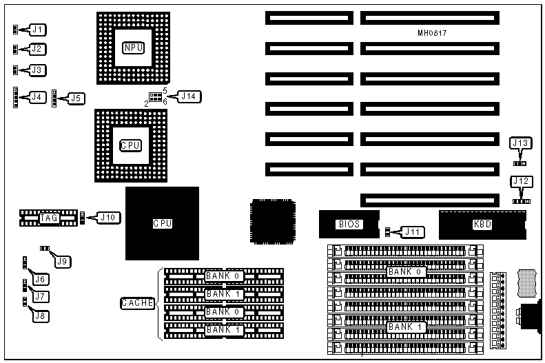 | | CMOS memory clear | J13 | pins 2 & 3 |