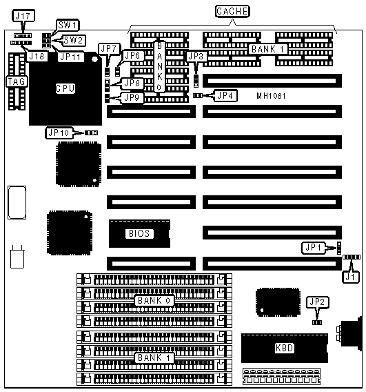 | | CMOS memory clear | JP1 | pins 1 & 2 |