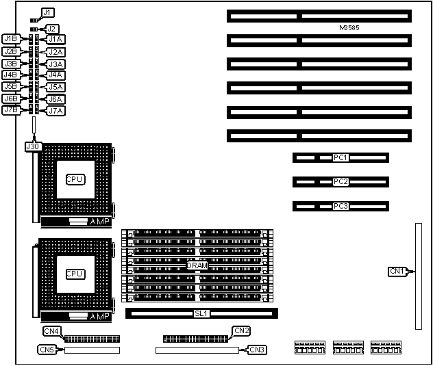 | | CMOS memory clear | J1B | Pins 2 & 3 |