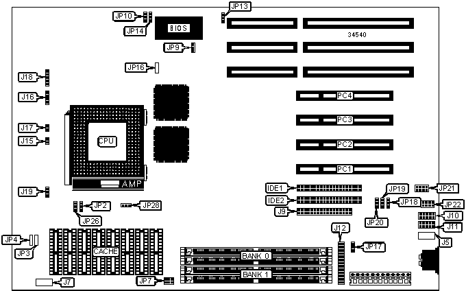 | | CMOS memory clear | JP9 | Pins 2 & 3 |