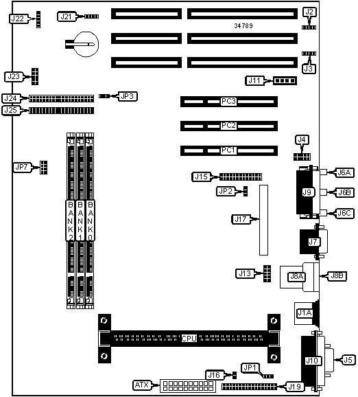 | | CMOS memory clear | JP3 | Pins 1 & 2 |