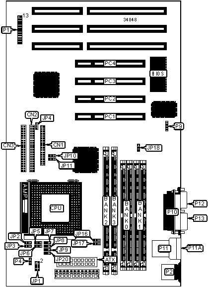 | | CMOS memory clear | JP4 | Pins 1 & 2 |