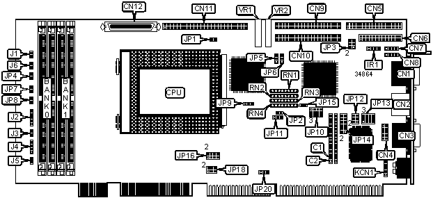 | Note: Board accepts 1MB/2MB video memory. The location is |