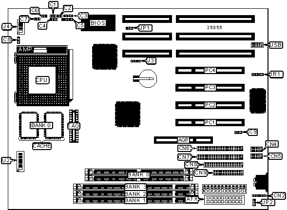 | AGP slot | AGP | PS/2 mouse | CN2 |