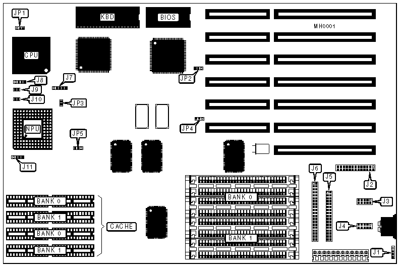 | Serial port (COM1) | J3 | Turbo LED | J9 |
