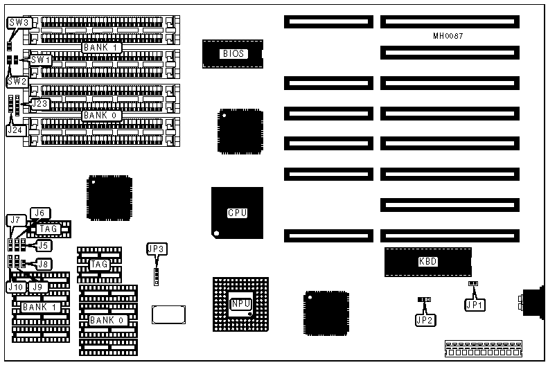 | Power LED & keylock | J23 | Turbo switch | SW2 |
