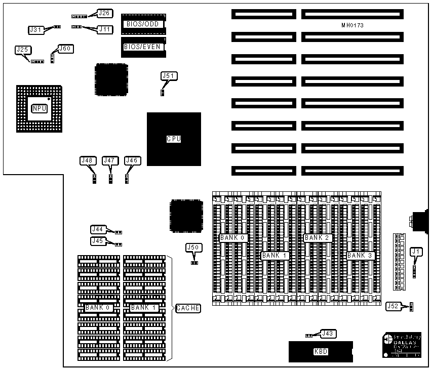 | Note:The location of jumpers J50 & J51 are unidentified. |
