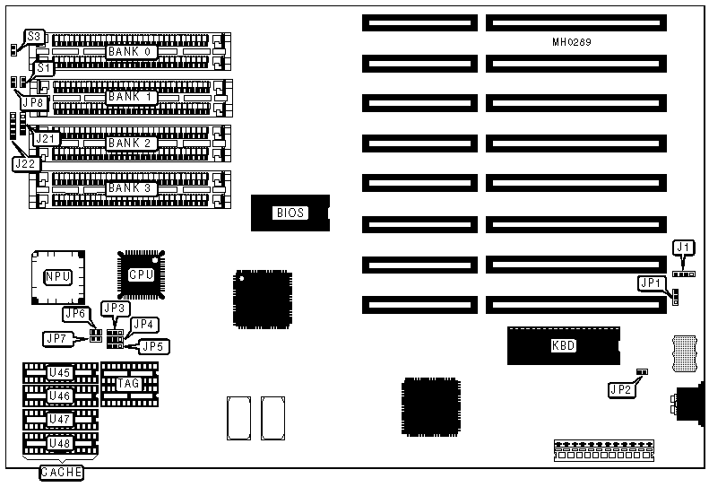 | | CMOS memory clear | JP1 | pins 1 & 2 |