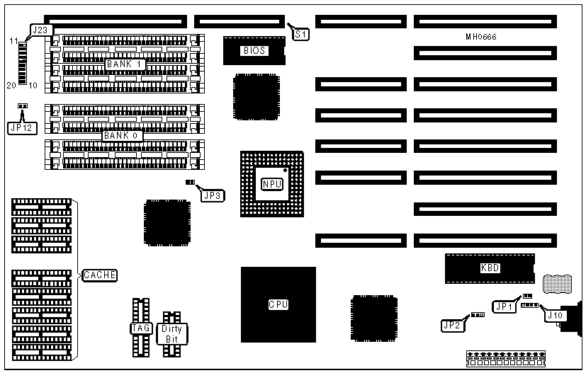 | Note:The cache, TAG, and dirty bit chip locations and |