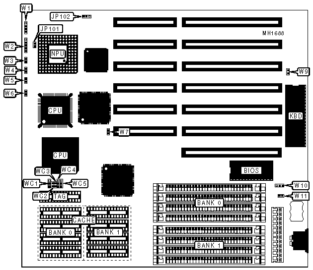 | | CMOS memory clear | W11 | pins 2 & 3 |