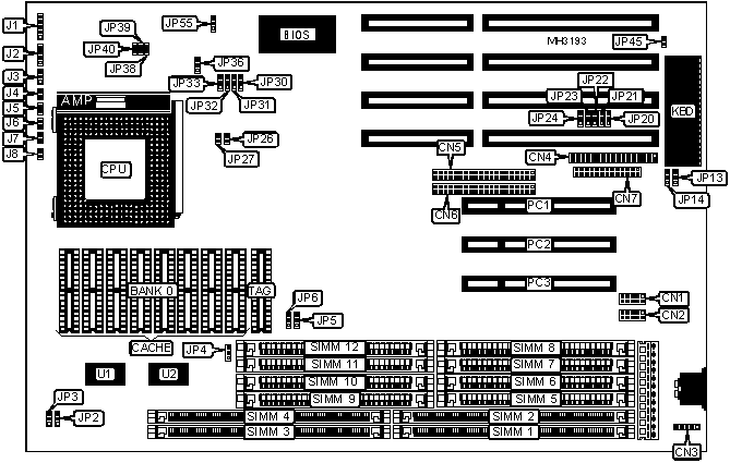 | Note: Bank 0 = SIMM 5 - 8. Bank 1 = SIMM 2. |