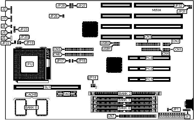 | Note: Board accepts EDO memory. Bank 2 accepts a |