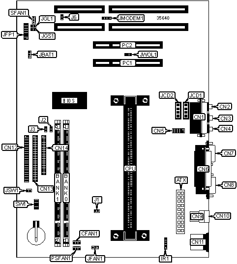 | Game/MIDI port | CN1 | CPU fan power | JFAN1 |
