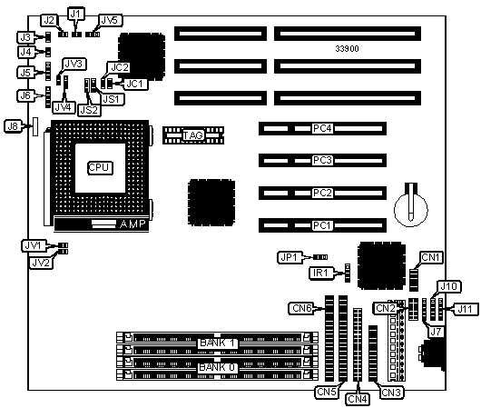 | | CMOS memory clear | JP1 | Pins 2 & 3 |