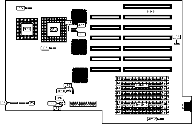 | | CMOS memory clear | J22 | Pins 3 & 4 |