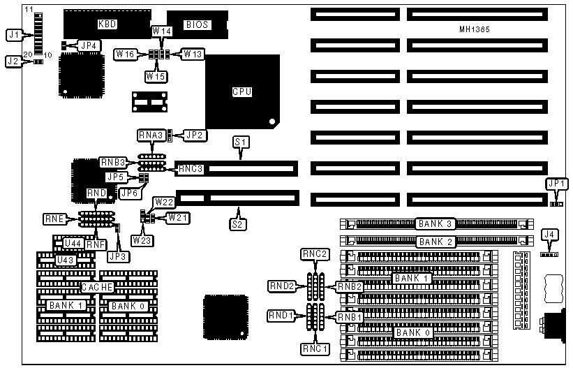 | | CMOS memory clear | JP1 | pins 1 & 2 |