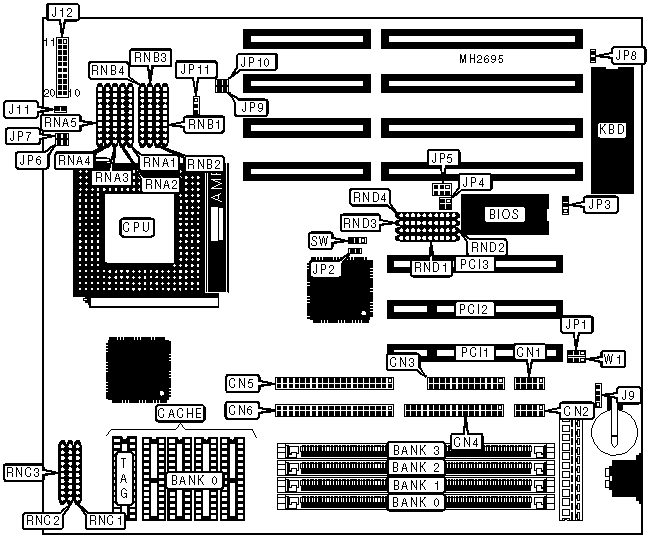 | | CMOS memory clear | JP1 | pins 1 & 2 |
