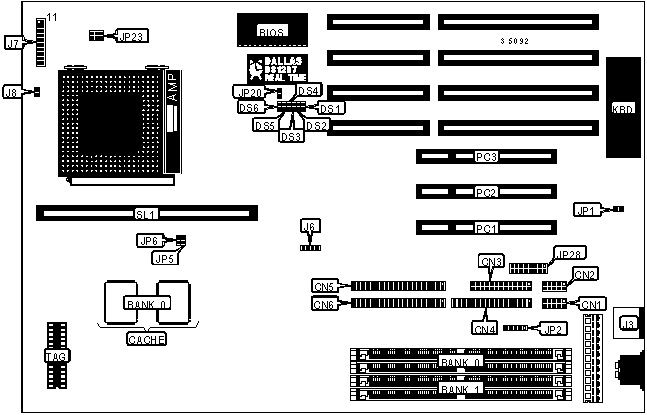 | Power LED & | J7 pins 1 | Cache slot | SL1 |