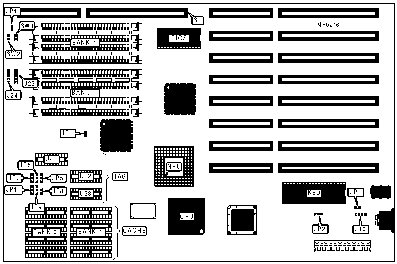 | | CMOS memory clear | JP2 | pins 1 & 2 |