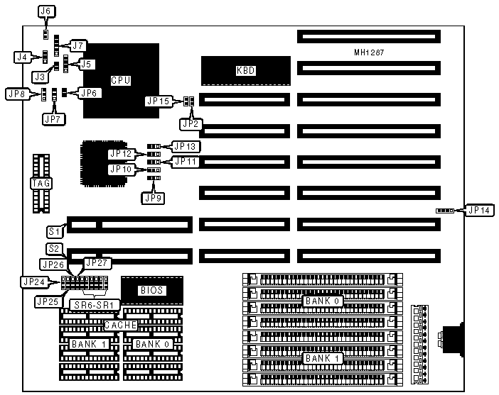 | Speaker | J5 | 32-bit VESA card (2) | S1 & S2 |