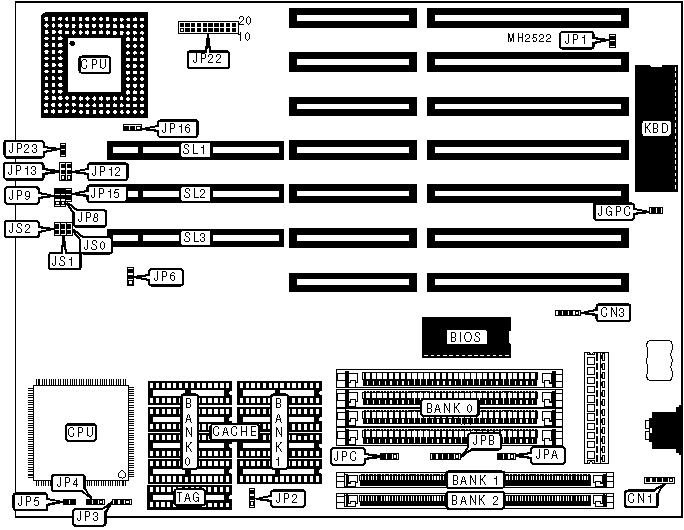 | Speaker | JP22 pins | 32-bit VESA | SL1 - SL3 |