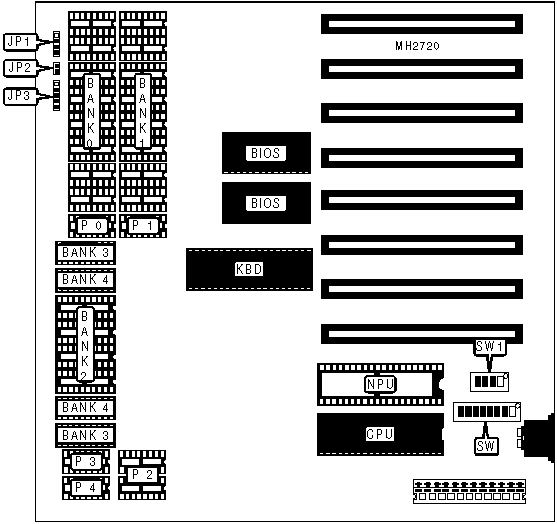 | | RAM wait state select 0 wait | SW1/2 | Off |