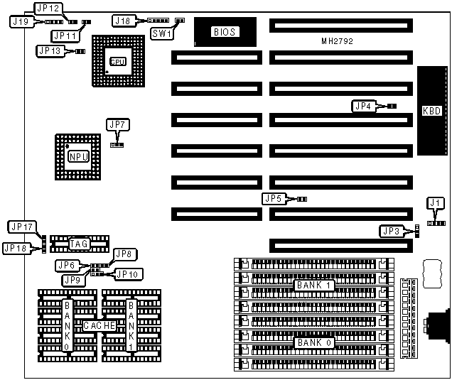 | | CMOS memory clear | JP3 | pins 1 & 2 |