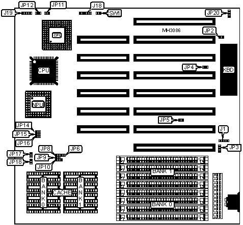 | | CMOS memory clear | JP3 | pins 1 & 2 |