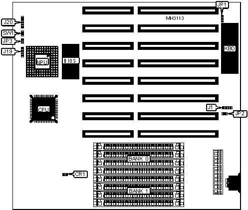 | | CMOS memory clear | JP2 | pins 1 & 2 |