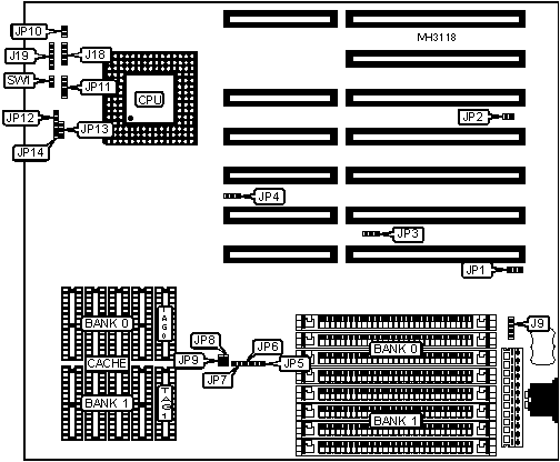 | | CMOS memory clear | JP1 | pins 1 & 2 |