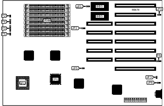 | | CMOS memory clear | JP2 | Pins 2 & 3 |