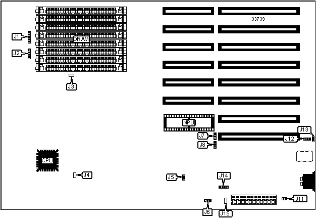 | | CMOS memory clear | J6 | Pins 2 & 3 |