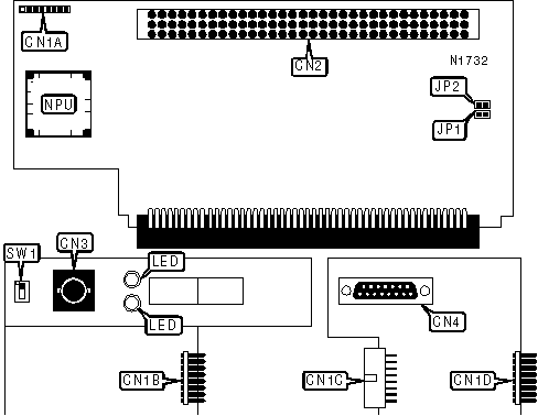 | Header to daughterboard | CN1C | AUI transceiver | CN4 |