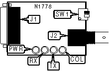 | AUI via DB-15 port | J1 | RG-58A/U 50ohm | J2 |