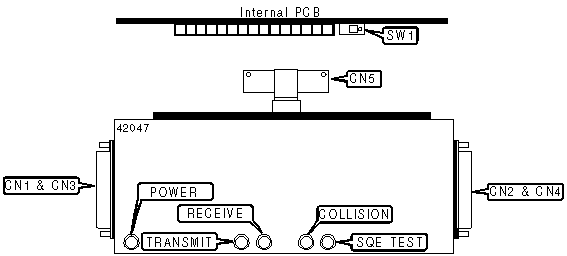 | AUI transceiver via | CN2 | BNC-T connector | CN5 |