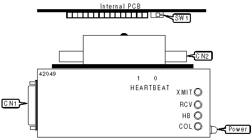 | AUI transceiver via | CN1 | Coaxial active | CN2 |