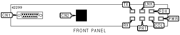 | AUI transceiver via | CN1 | RJ-45 UTP connector | CN2 |